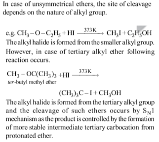 CH3OC2H5 and (CH3)3C – OCH3 are treated with hydriodic acid. The fragments obtained after reactions are