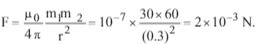 Two isolated point poles of strength 30 A-m and 60 A-m are placed at a distance of 0.3m. The force of repulsion is